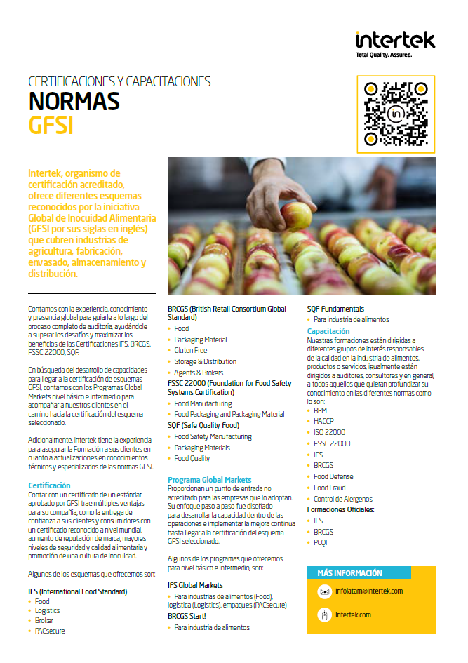 Intertek, organismo de certificación acreditado, le ayuda a certificar la seguridad y calidad de los alimentos y los procesos de producción de su empresa de acuerdo al estándar IFS Food.